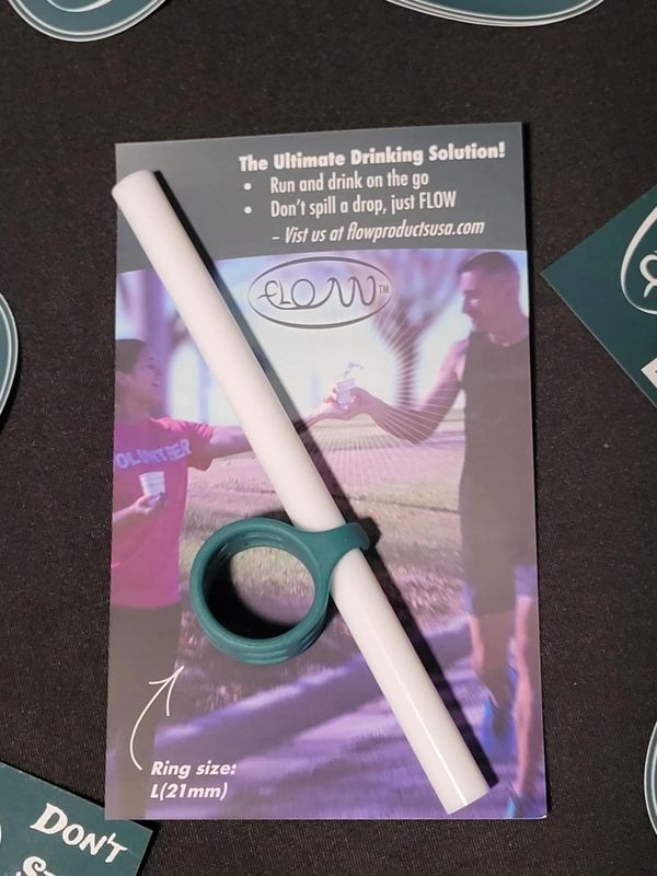 Introducing fLOw, the innovative silicone ring with a built-in straw holder that ensures runners stay properly hydrated during their runs. Never spill a drop at the water stops again - simply slip on the ring and use the silicone straw to sip water on the go. Designed to revolutionize the way runners hydrate, fLOw is a must-have accessory for any fitness enthusiast.